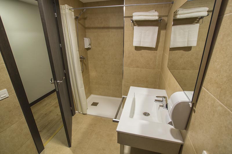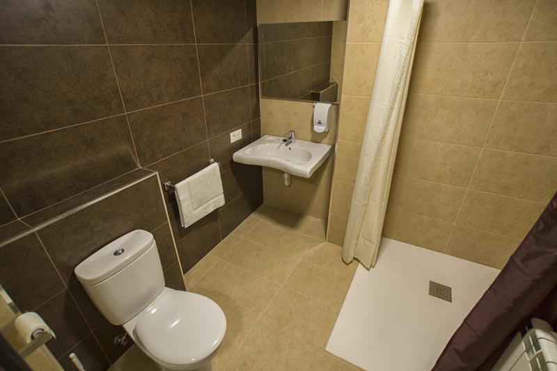 Baños completos con ducha, toallas, secador de pelo y artículos de aseo.